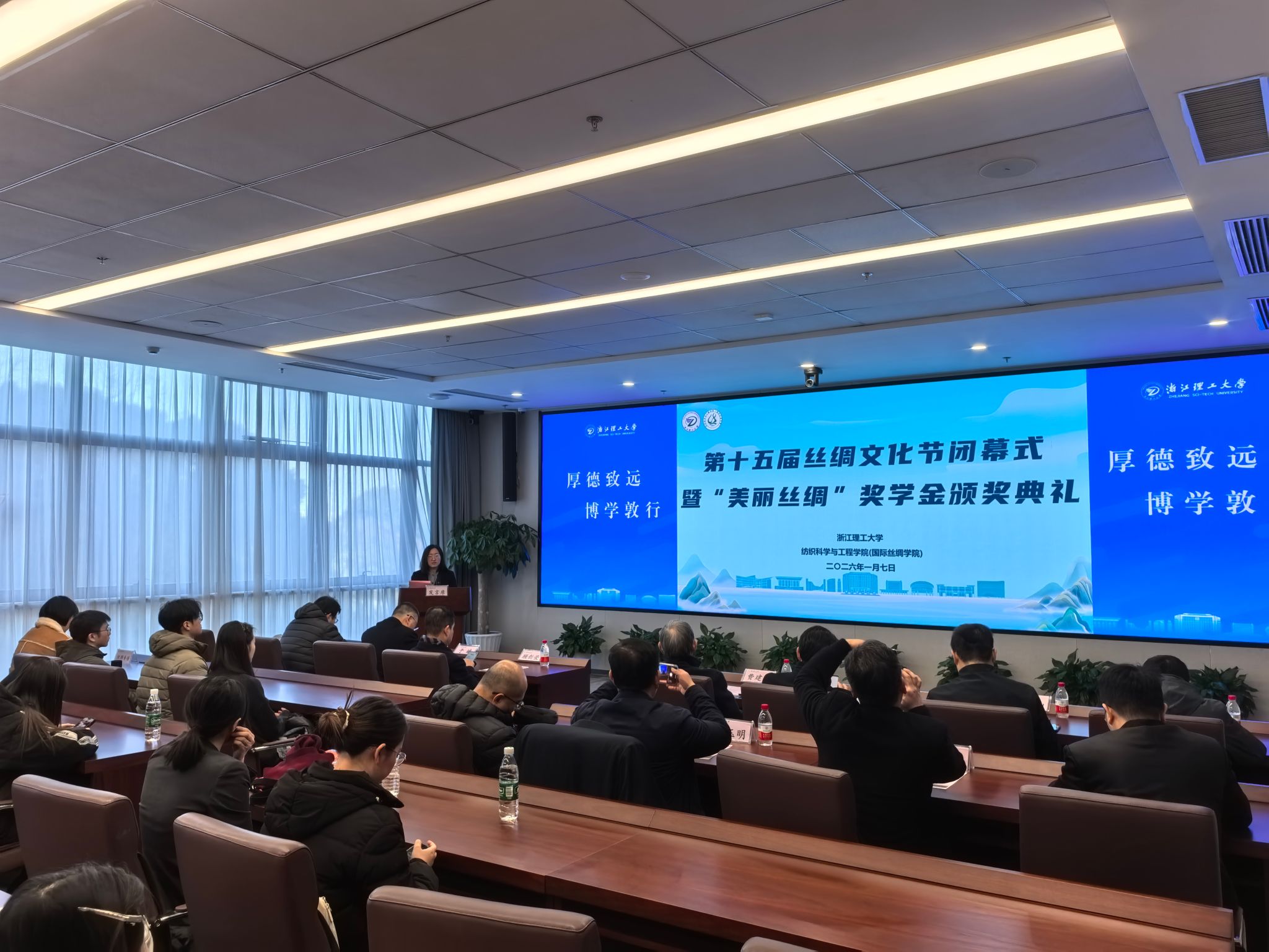 第十五届丝绸文化节闭幕式暨“美丽丝绸”奖学金颁奖典礼在尚+大楼310报告厅隆重举行。